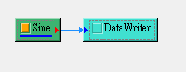 將欲輸出之元件直接連接至 Data Writer,如下圖顯示將source sine 輸出。