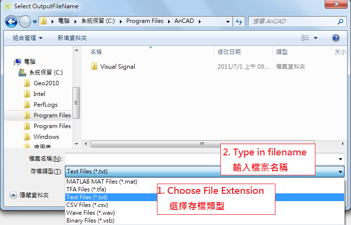 接著,如下,在跳出的視窗中選擇檔案種類並輸入檔案位置。