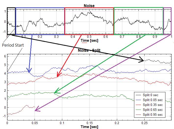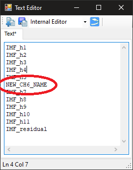 輸出訊號為頻譜時(如 STFT 的結果),第一欄為時間軸,第二、三欄為時頻圖中第一橫列的實部及虛部,第四、五欄為第二橫列的實部與虛部,以此類推。對照時頻圖,每一橫列皆代表一個頻率,然此頻率的數值必須從檔頭(header) 中的 # StartFreq 以及 # FreqInterval 來推算,沒有直接顯示在檔案裡。
