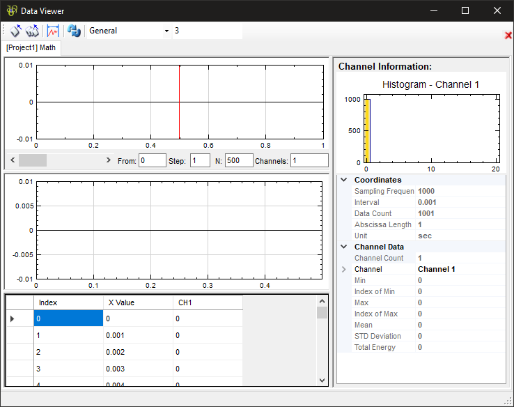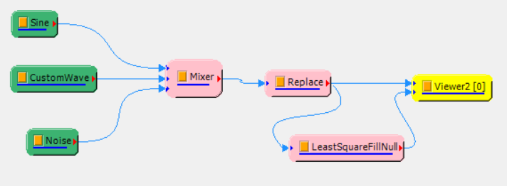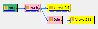 以 Source / Sine Wave 建立正弦波並以 Viewer / Channel Viewer 觀看其結果,並將Channel Viewer 的參數 ViewerHeight 設定為 400。