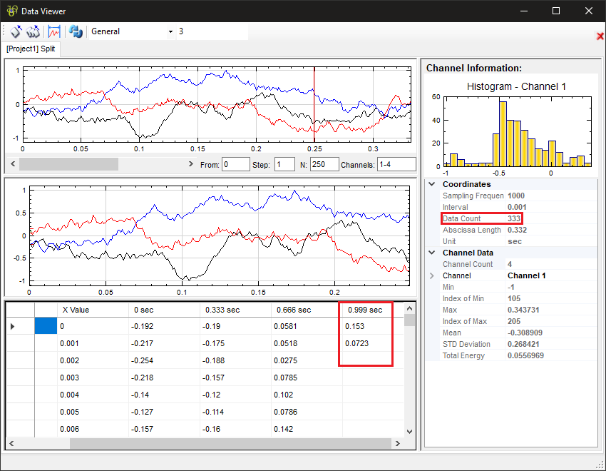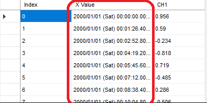 存出的檔案第一欄為時間軸,第二欄以後為資料。見下圖之說明。