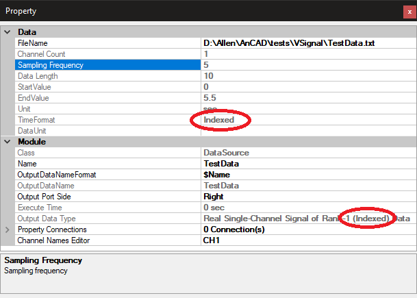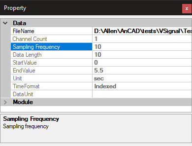 TFA Files 也是純文字檔,但在文件中多了檔頭(header)的設計,讓 Visual Signal 在讀入此類型檔案時可以更快速。標頭中記載了包括資料類型、資料長度、取樣頻率…等資訊。