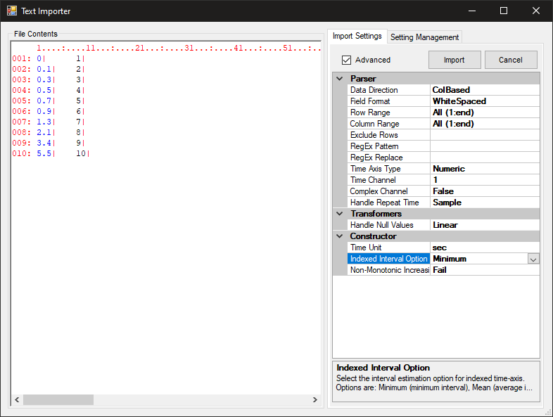 - Add “Indexed Interval Options” & “Non-Monotonic Increasing Options” properties in Source / Open Data / Text Importer
