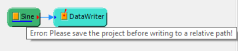 C:\Users\<user>\Desktop\Sine.tfa如果專案尚未存檔,則在寫出檔案時(即開啟本元件的執行開關時)會出現以下錯誤訊息: